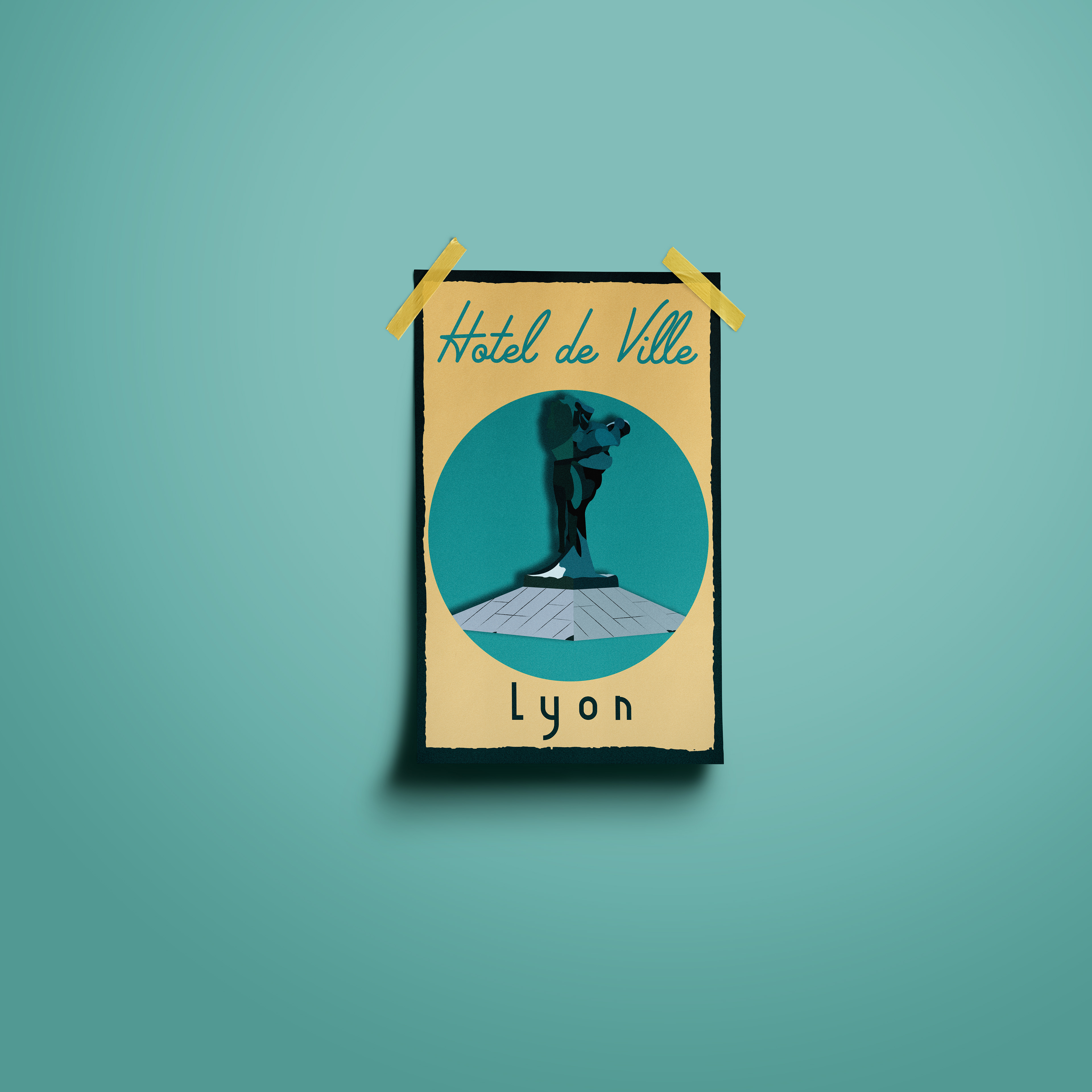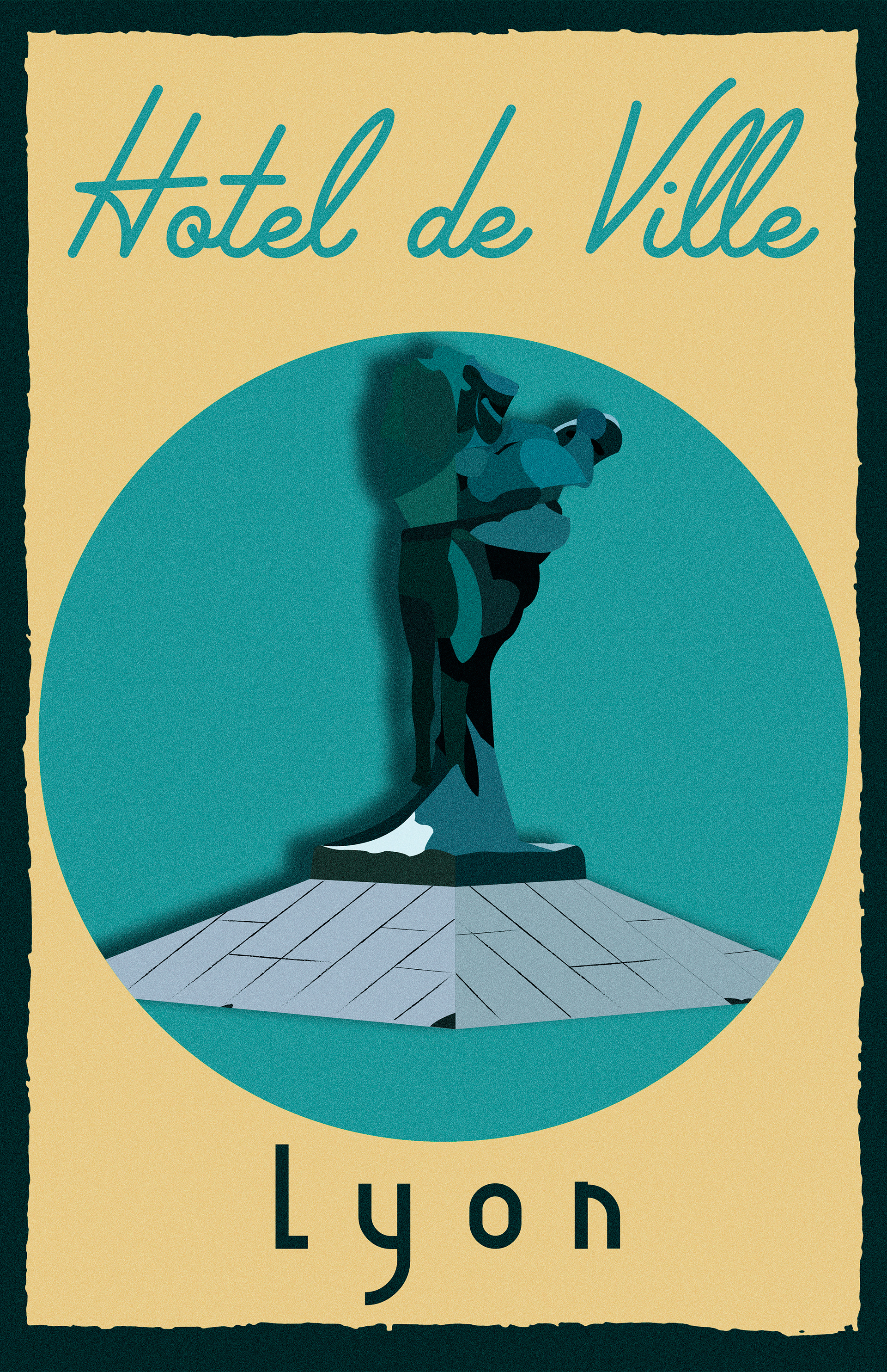 Hôtel de Ville. Ink on Canvas. 11" x 17". In Lyon, France, the iconic Louis Pradel plaza—better known to skateboarders as Hotel de Ville is a major staple of Fine French Skateboarding. Made famous via skate videos in the 1990s, Hotel de Ville became a destination spot for skaters worldwide thanks to its amazing features, and the incredible amount of footage featuring JB Gillet, Lucas Puig, JJ Rousseau, Jesus Fernandez amongst other French greats finessing its white granite expanse. Today Hotel De Ville remains a thriving spot on the Euro scene and if you visit it today you could be lucky enough to witness Quentin Boillon's amazing flick tricks over the hip. Part of an on-going series titled "Boarding Pass". "Boarding Pass" is a series of Posters celebrating some of Skateboarding's most iconic, beloved, and amazing skate spots, world wide.